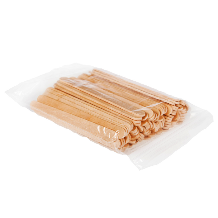 Pack de 100 espátulas pequenas de madeira, especialmente desenhadas para a depilação facial.