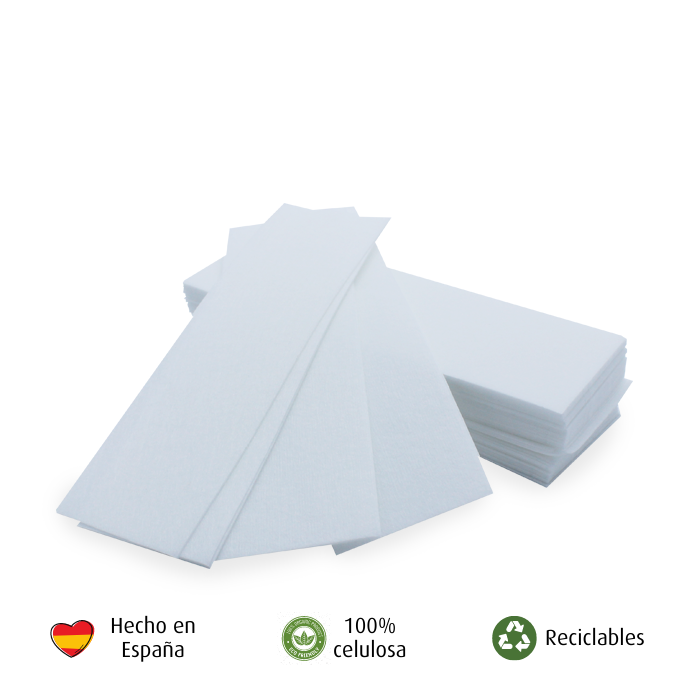 Tiras de celulose de alta qualidade, totalmente naturais. Retira facilmente a cera em rolo do seu corpo.