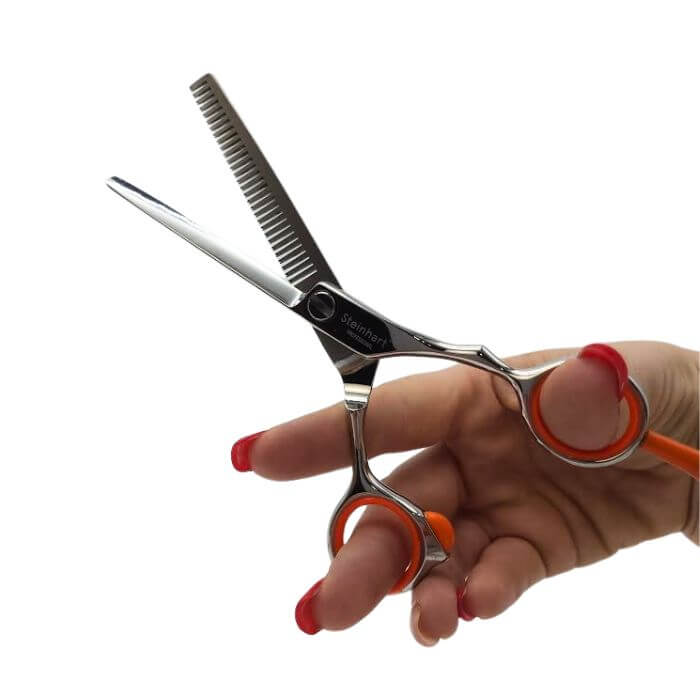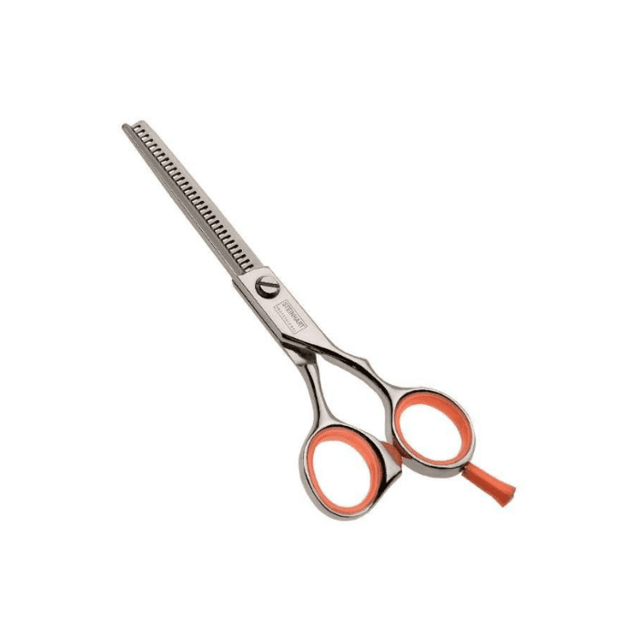 Fabricada em aço de qualidade, retificado no Japão, a tesoura STEINHART Orange Line destaca-se pela sua precisão e durabilidade excecional. Com um comprimento ideal de 5,5 polegadas, asseguram um manuseamento confortável e um controlo total sobre cada corte e golpe, permitindo-lhe criar looks perfeitos com facilidade e precisão.