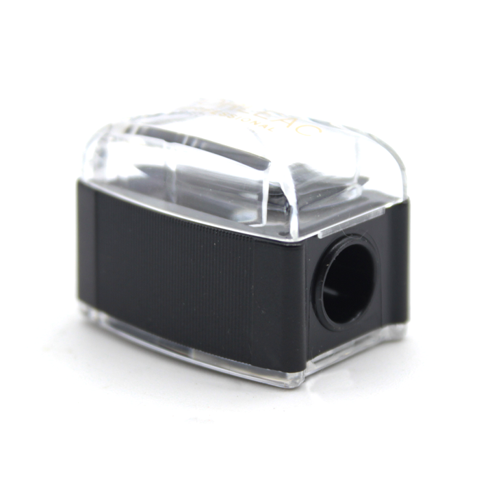 Afiador de lápis simples com recipiente de aparas para afiação fácil de vários tipos e formatos de lápis cosméticos.