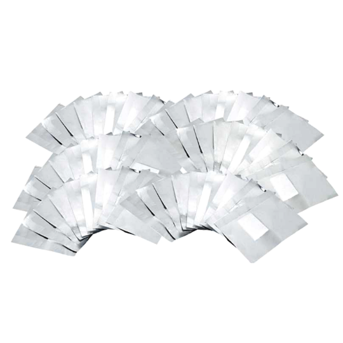 Pacote de 100 unidades de tiras de alumínio para remover esmaltes semi-permanentes. Acessório descartável para manicuras que serve para remover os esmaltes destas manicuras de forma simples, mantendo sempre a saúde das nossas unhas e da superfície dos pregos. Tem um sistema exclusivo para remover o esmalte que o torna o sistema mais delicado para remover o esmalte.