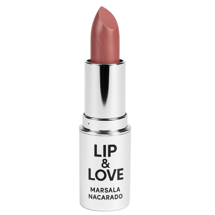 O batom Lip & Love da D'Orleac Professional oferece um tom marsala nacarado vibrante, ideal para um look sofisticado e moderno. O seu acabamento luminoso realça os lábios instantaneamente.