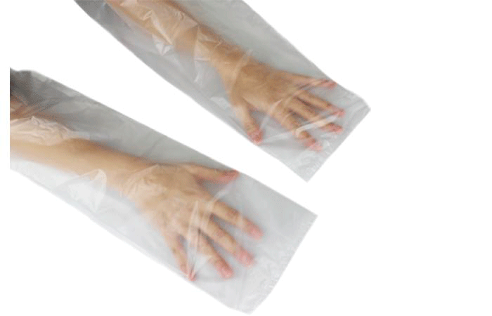 Luvas de plástico descartáveis transparentes para colocar em mãos ou pés no banho de parafina evitando que o calor se evapore fácilmente. Cobre quase todo o braço pelo que serve para tratamentos nos cotovelos.