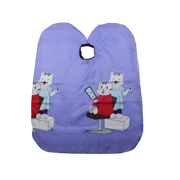 Capa infantil com desenhos e fundo violeta. Com velcro na zona do pescoço para e apertar comodamente.