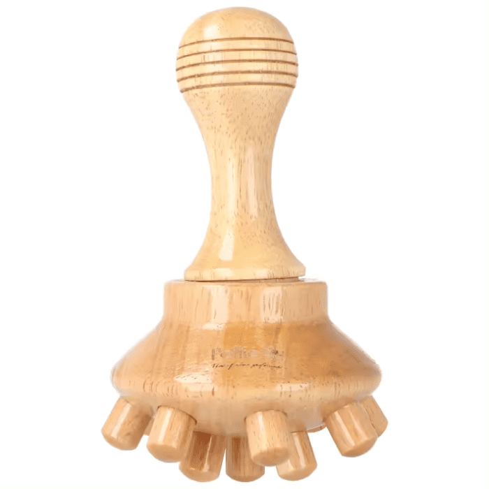 Acessório de madeira Pollié para maderoterapia. Estimula a circulação e a drenagem, ajuda a combater celulite e retenção de líquidos nas coxas, glúteos e abdómen.