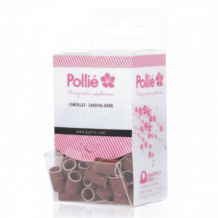 Ganhe tempo com o dispenser POLLIE de 100 cilindros grão #80. Compatíveis com mandril padrão, indicados para desbaste rápido, remoção de produto (gel/acrílico) e calosidades em manicure e pedicure.