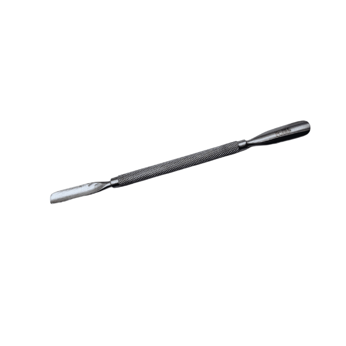 O empurrador de cutículas Nº 2 foi desenvolvido para remover suavemente o excesso de pele na base da unha, ajudando a manter uma aparência limpa e saudável. Com sua ponta dupla, oferece versatilidade: uma extremidade plana para empurrar com precisão e outra levemente curvada para facilitar a remoção de cutículas mortas sem danificar a unha natural.