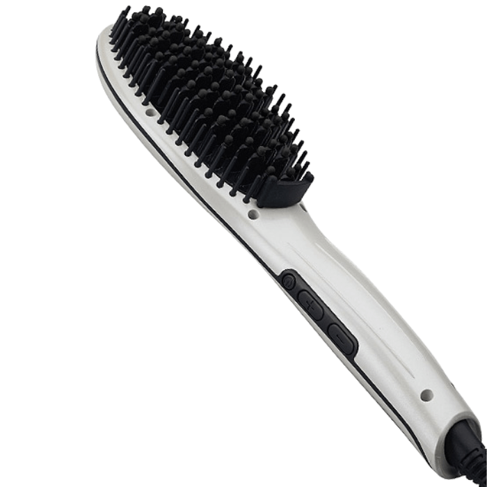 29,90 € I.V.A IncluidoA escova alisadora elétrica com ecrã LCD é a escolha ideal para alisar o cabelo com eficácia e segurança. Conta com protetores de silicone nas cerdas, que evitam danos por calor e garantem um alisamento suave.