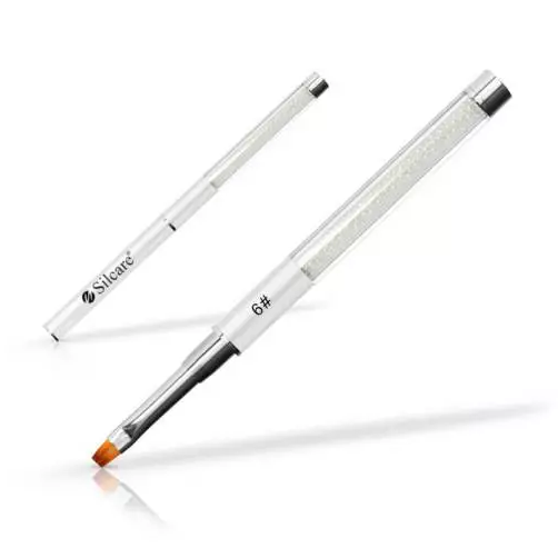A escova de gel Silcare com pequenas pérolas brancas é uma ferramenta perfeita para um estilista de unhas.
