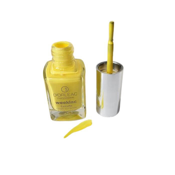 Com o esmalte Weeklac da D’Orleac, você pode exibir unhas impecáveis com uma cor amarela vibrante, brilho duradouro e resistência incomparável.