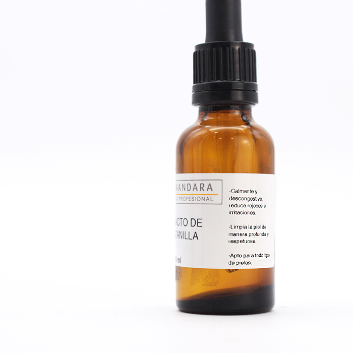 O extrato de camomila é um perfeito calmante e descongestivo para a pele alterada por tratamentos cosméticos energéticos (limpeza profunda da cutis, depilação, peeling, etc.)