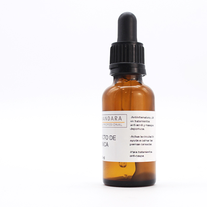 O extrato de arnica montana tem propriedades estimulantes, anti edemas, anti-sépticas.