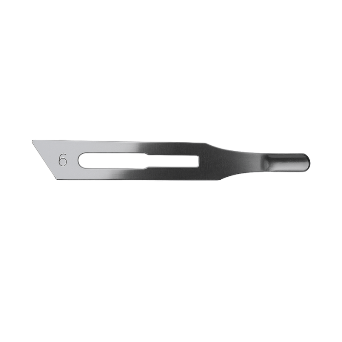 Pack com 12 gubias nº6 esterilizadas e descartáveis. Corte largo e profundo para calosidades extensas. Ferramenta segura para podologia profissional.