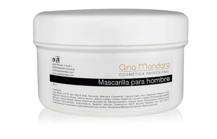 Máscara facial, especial para a pele do rosto masculino, formulada para que junto a um tratamento facial ajude à recuperação da pele a que os princípios ativos dos produtos utilizados penetrem melhor e mais profundamente, junto às propriedades da máscara.