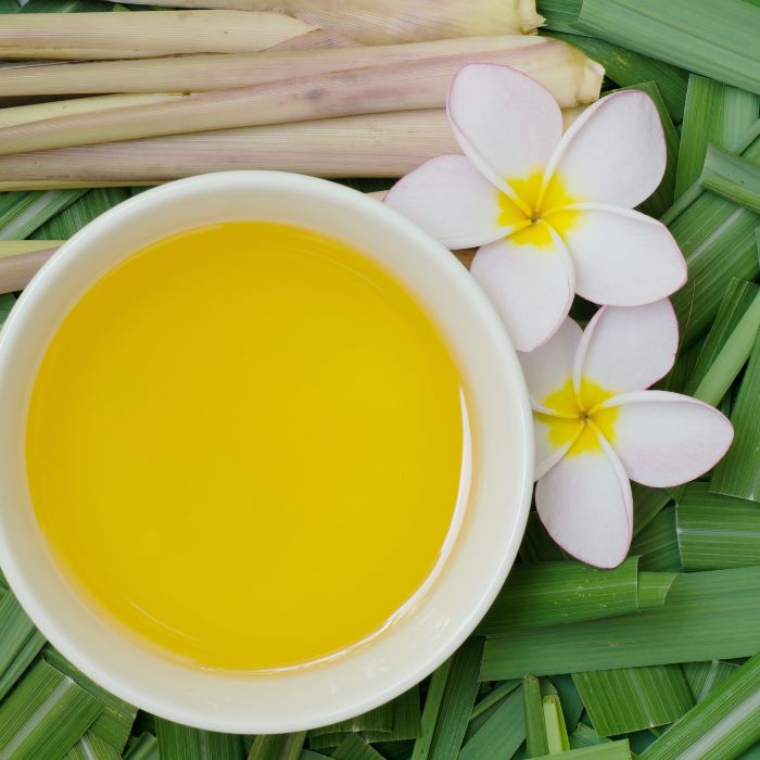 Óleo essencial de Citronella numa garrafa de vidro de 30 ml com um conta-gotas.
