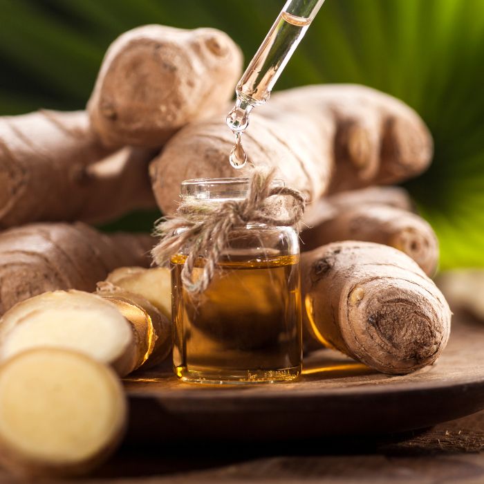 Para os cuidados capilares, aplicar uma mistura diluída de óleo essencial de gengibre com uma massagem suave no couro cabeludo para remover a caspa e aliviar a inflamação.