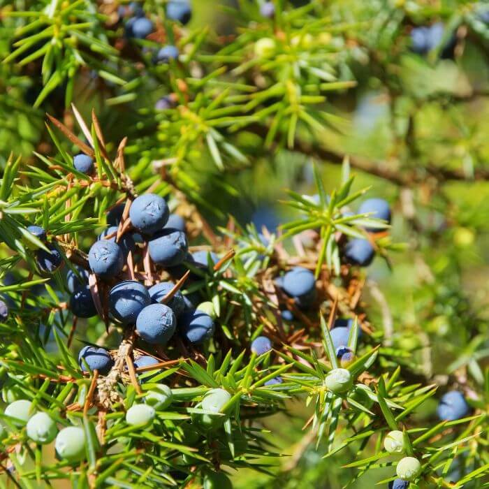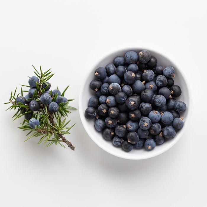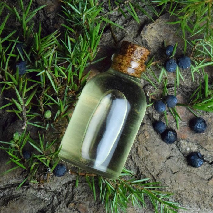 Óleo essencial de zimbro é destilado a partir das bagas, madeira e folhas da planta.
