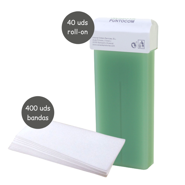 Pack de depilación compuesto por 40 rollones de Aloe Vera + 400 bandas depilatorias.