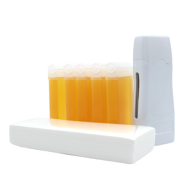5 cartuchos de cera depilatória de consistência fluida rolam sobre Natural.