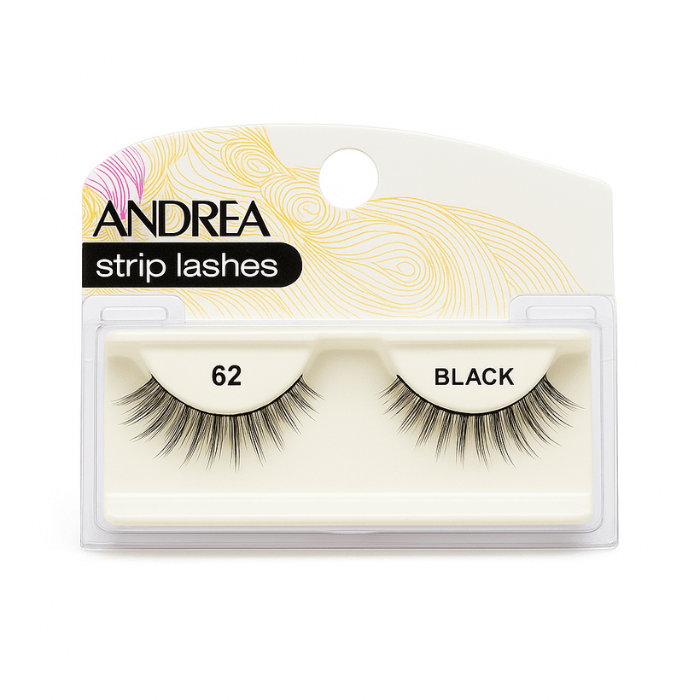 Pestanas Andrea SM 62 pretas. Fáceis de aplicar, reutilizáveis e com acabamento natural. Dá intensidade ao teu olhar com Ana Mandara.