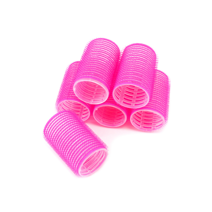 Saqueta com 16 rolos de plástico com velcro cor-de-rosa. 24mm.