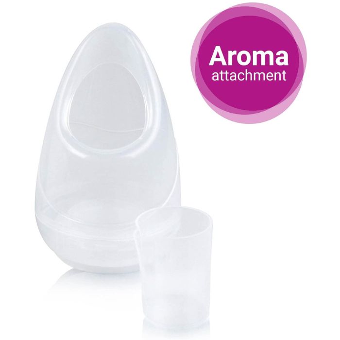 Além disso, o difusor integrado assegura uma distribuição uniforme do vapor, e estão incluídos um acessório para o nariz e um copo medidor.