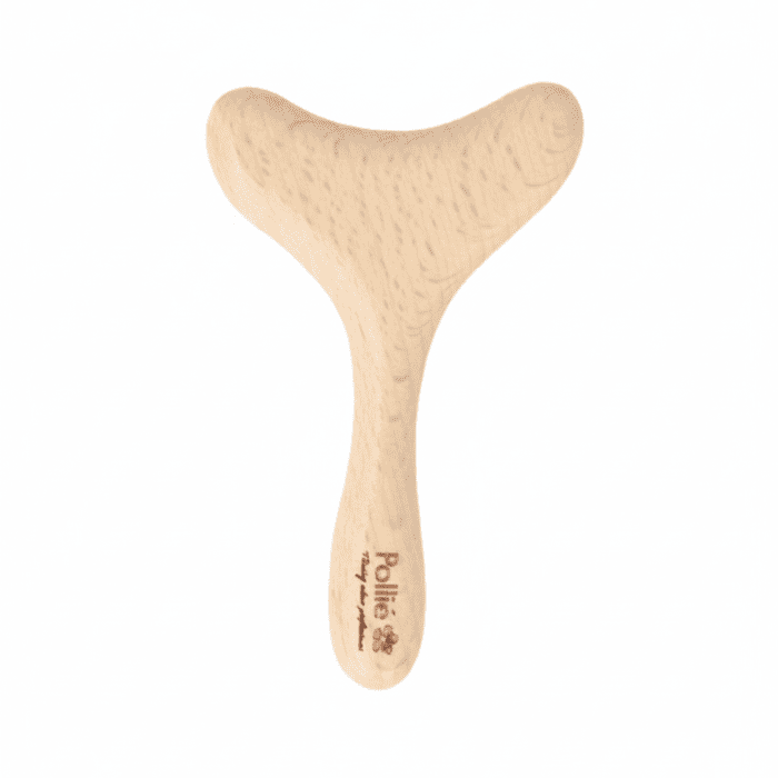 A tabela modeladora facial Pollié adapta-se ao contorno do rosto e pescoço para drenar, descongestionar e tonificar. O acabamento em madeira natural desliza com conforto, potenciando a massagem.