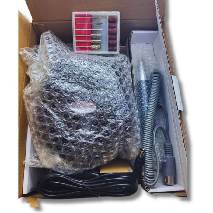 Inclui uma ampla variedade de brocas intercambiáveis que se adaptam a diferentes necessidades: desde a remoção de esmalte em gel até o cuidado das cutículas e o modelado de unhas acrílicas. Seu design compacto e elegante acabamento preto tornam-no perfeito para qualquer salão ou uso doméstico.